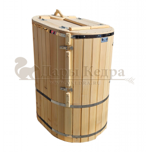 Бондарная фитобочка имеет такое название, потому что выполнена по старинной технологии в шип-паз, без использования каких-либо иных дополнительных скрепляющих элементов. Производственное оборудования позволило для круглых бочек применить лунный паз глубиной 2.5 см, который имеет надежное прилегание досок друг к другу, скрепляя бочку плотно, не пропуская пар и имеет вид фаски. Кедровая Фитобочка - это мини парная, которую можно установить в квартире и каждый день использовать в домашних условиях. Настоящая лечебница для здоровья всей семьи. Во время парения человек сидит внутри кедровой бочки, а голова находится снаружи. Благодаря этому исключается перегрев и процедура парения комфортно переносится пожилыми людьми и детьми.